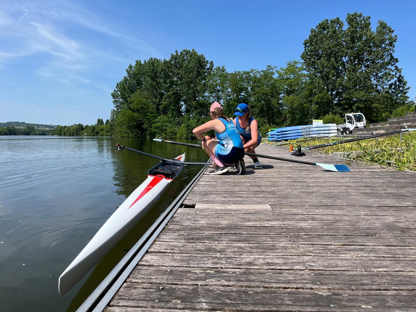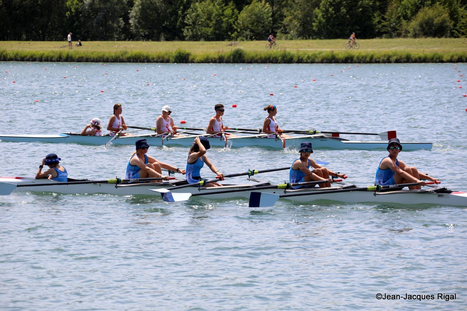 chaque équipage dispose d'une ligne d'eau, matérialisée ou non par un balisage. Pour les championnats nationaux, les courses se déroulent sur 6 lignes d'eaux dans un balisage de type "Albano".